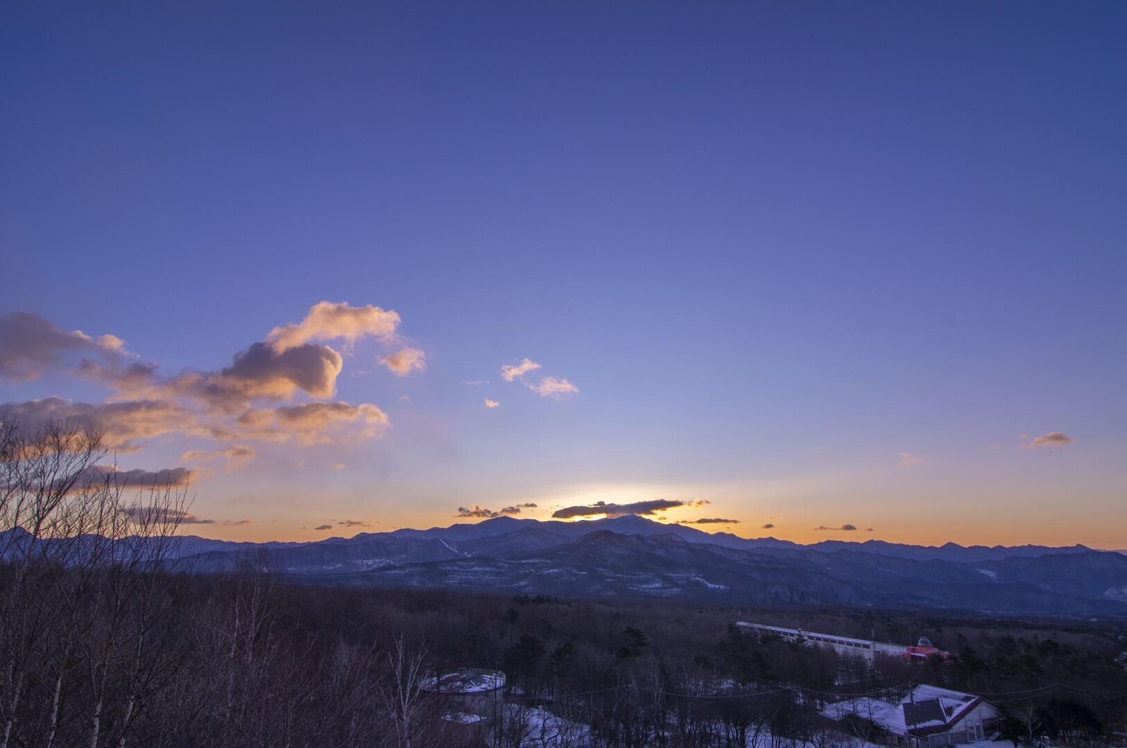 反対側(北西)を見ると、北アルプス?にビーナスベルトの紫色が。