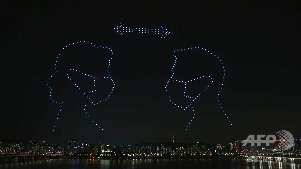 中国の一糸乱れぬドローンの編隊飛行に度肝を抜かれたが、韓国のはメルヘンチックな仕掛け花火のようだ。