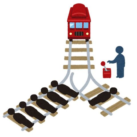 線路を走っている一台のトロッコが制御不能に陥ってしまい、このまま進めば向かった先で作業をしている5人がトロッコにひき殺されてしまう。