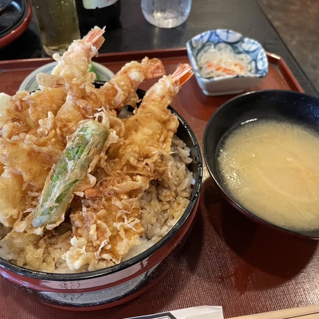 サクッと揚げられたかき揚げに上品な甘さのタレ。