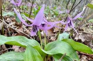 行者ニンニクの群生の近くに カタクリの花が咲いてて・・
