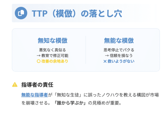 模倣(TTP)の落とし穴:無知な模倣と無能な模倣