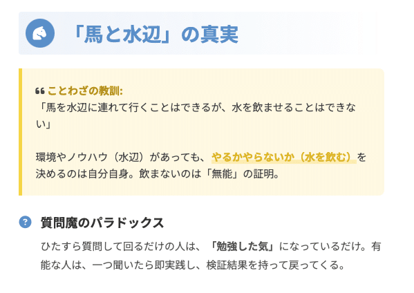 教育や指導の現場には、**「馬を水辺に連れて行くことはできるが、水を飲ませることはできない」**という有名なことわざがあります。