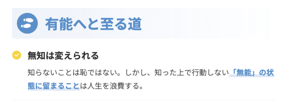 しかし、無知を超えた先にある「無能」という領域に足を踏み入れてしまった瞬間、人の成長は完全に止まってしまうのです。