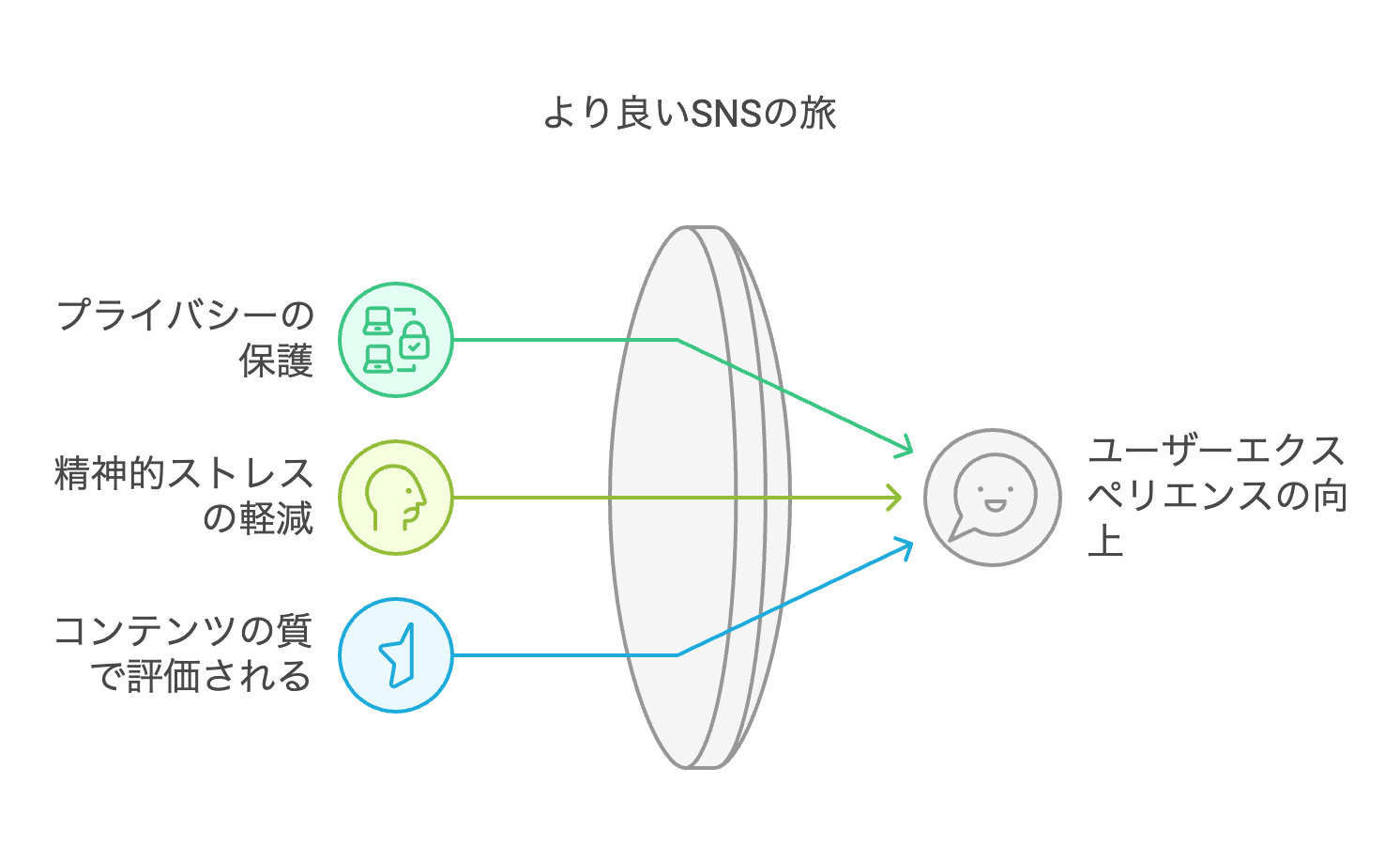 特に、プライバシーの保護、精神的ストレスの軽減、コンテンツの質を重視する文化の形成 という3つの大きなメリットがあります。