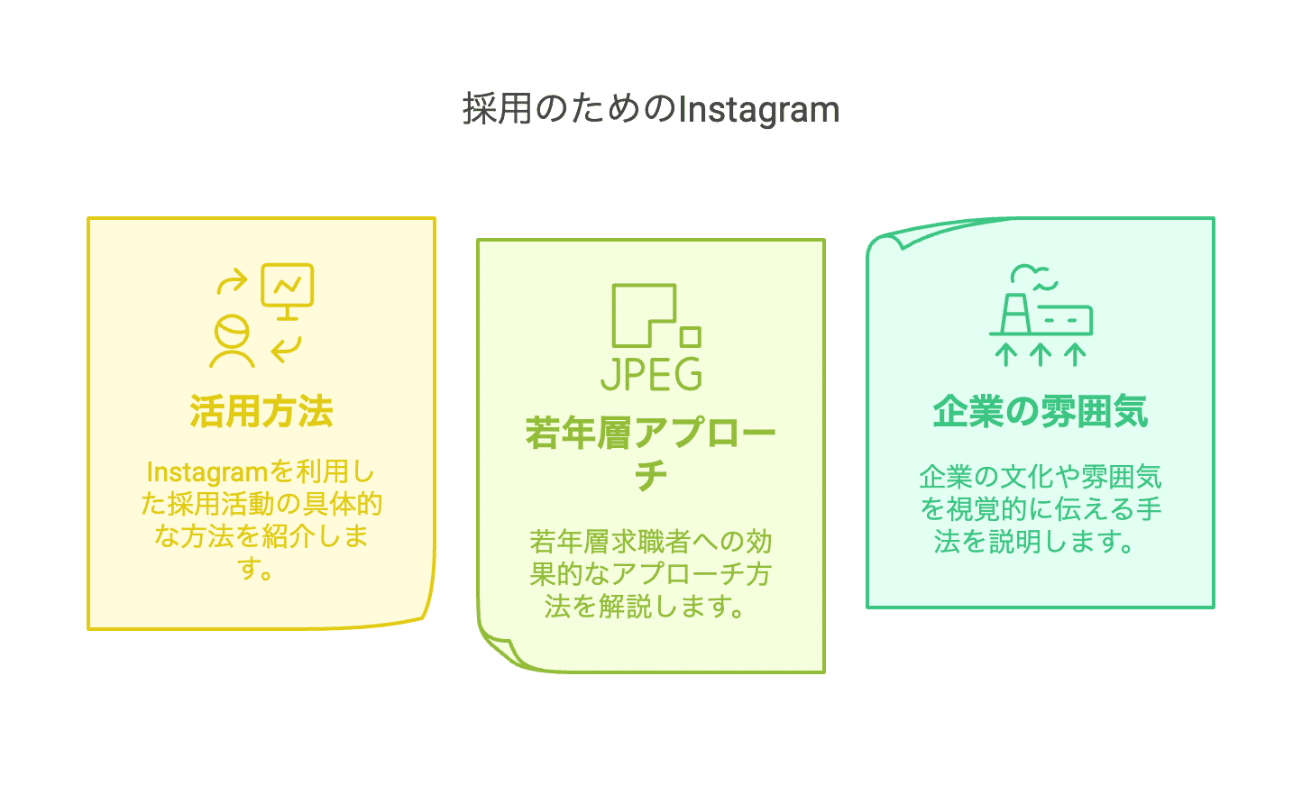 採用担当者の方は、この記事を読むことで、Instagramを活用した効果的な採用手法を理解し、実践に役立てることができるかなと。