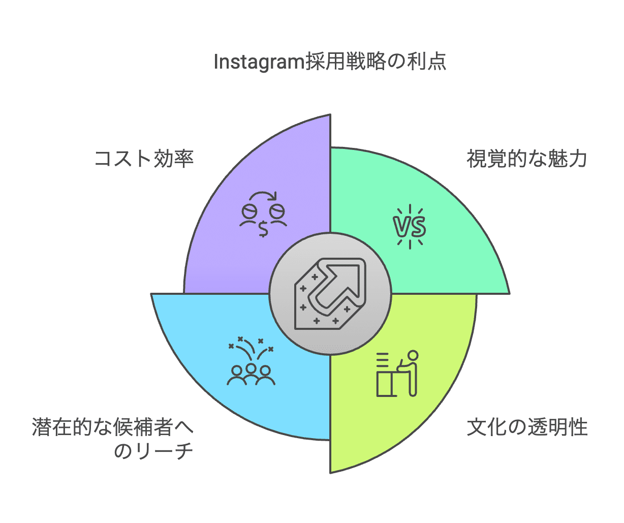 ここでは、Instagram採用の主なメリットを詳しく解説し、それぞれのポイントをより深く掘り下げて紹介します。