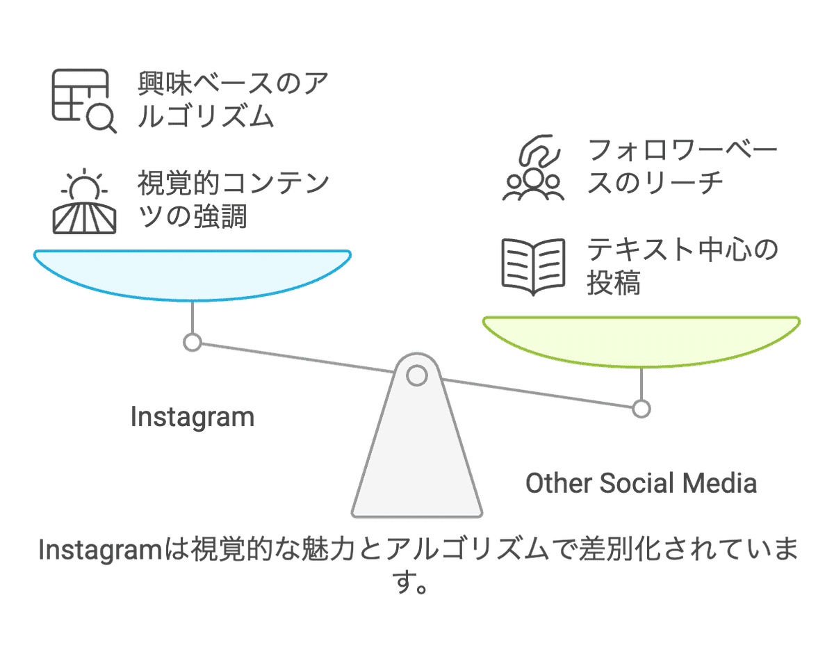 インスタグラムは写真や動画といった視覚的なコンテンツに特化しており、テキスト中心のSNS(例:X(旧Twitter)、Facebook、LinkedIn)と比較して、「直感的にブランドや商品を伝えやすい」という大きな特徴があります。