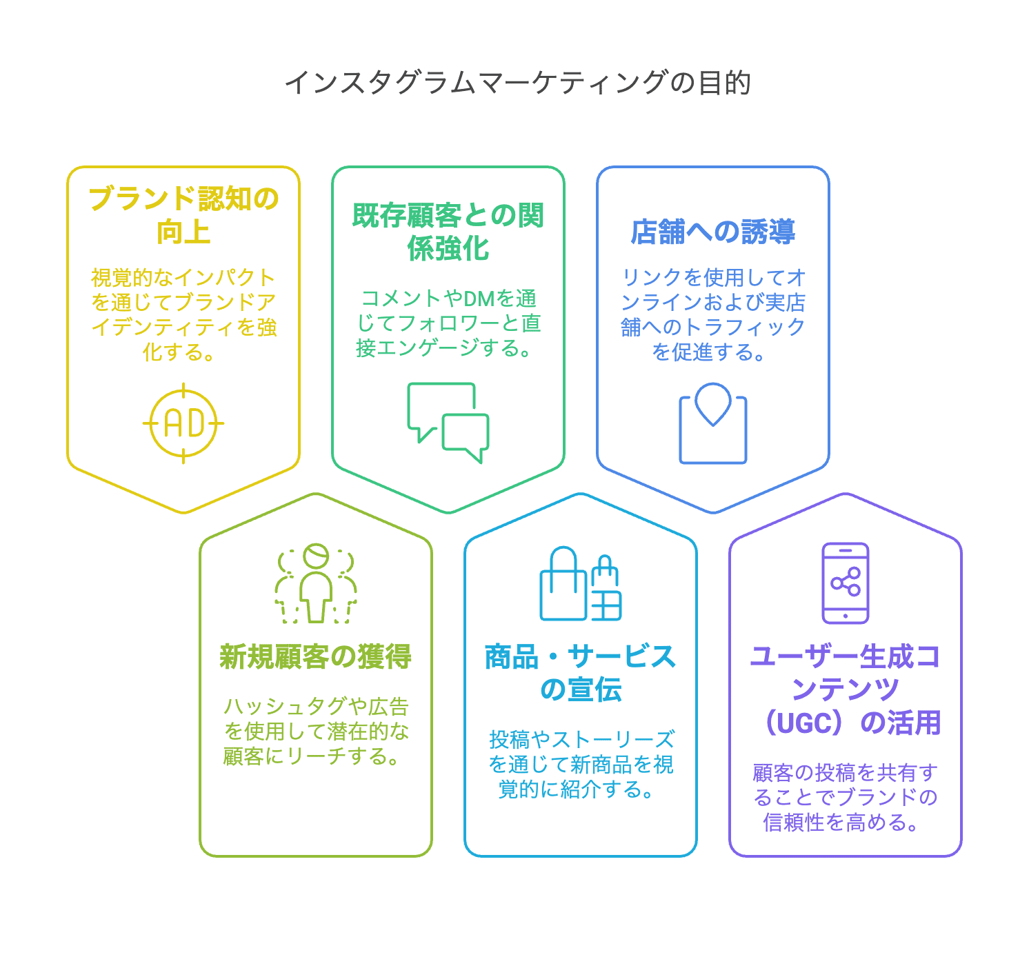 企業やブランドがインスタグラムをマーケティングに活用する目的は、以下のように多岐にわたります。