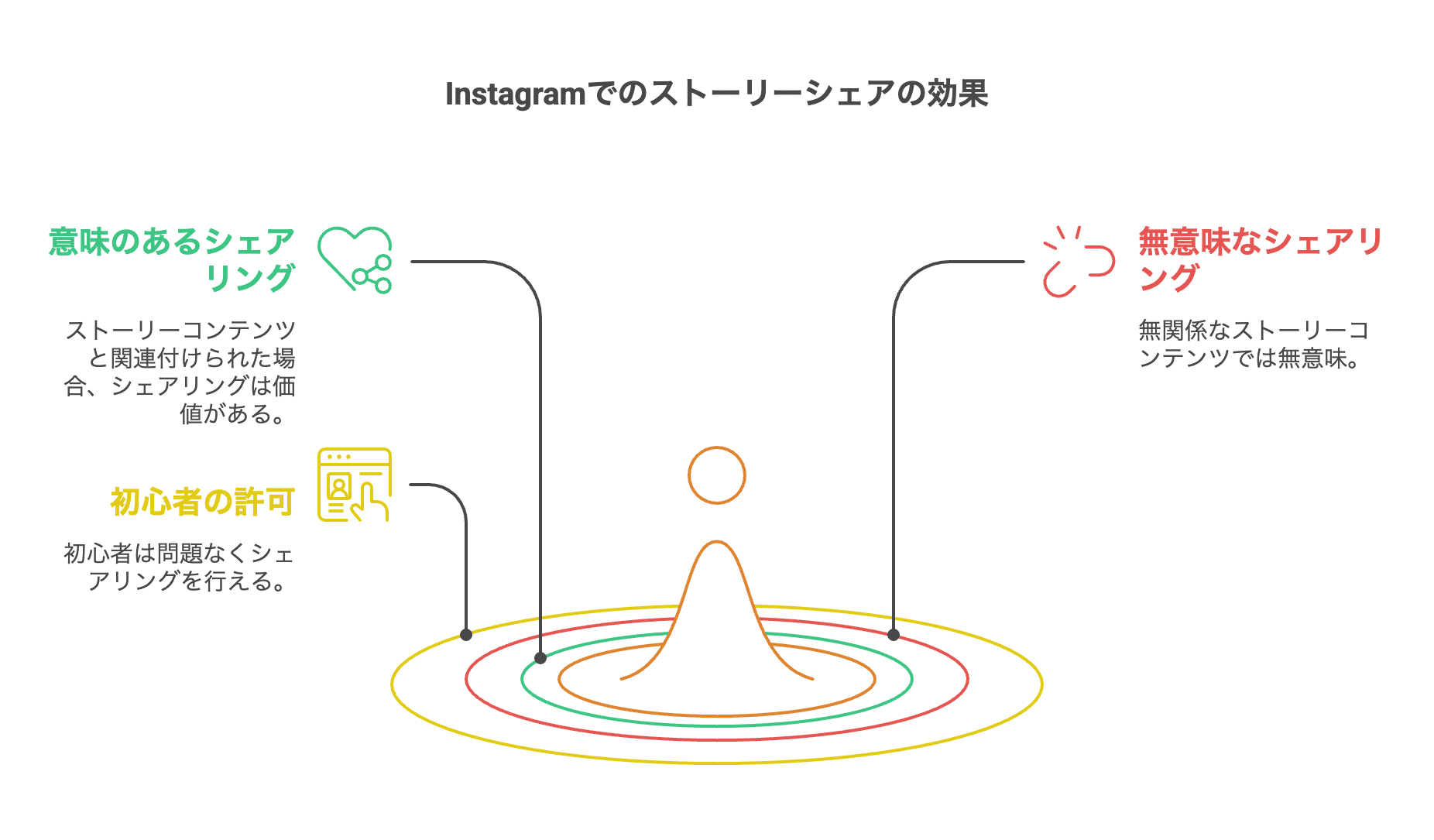 つまり、大事になるのは投稿のシェアという機能が悪いのではなくて、投稿のシェアというものを日々の価値観や考え方をストーリーズに反映できていないことが悪いんですね。