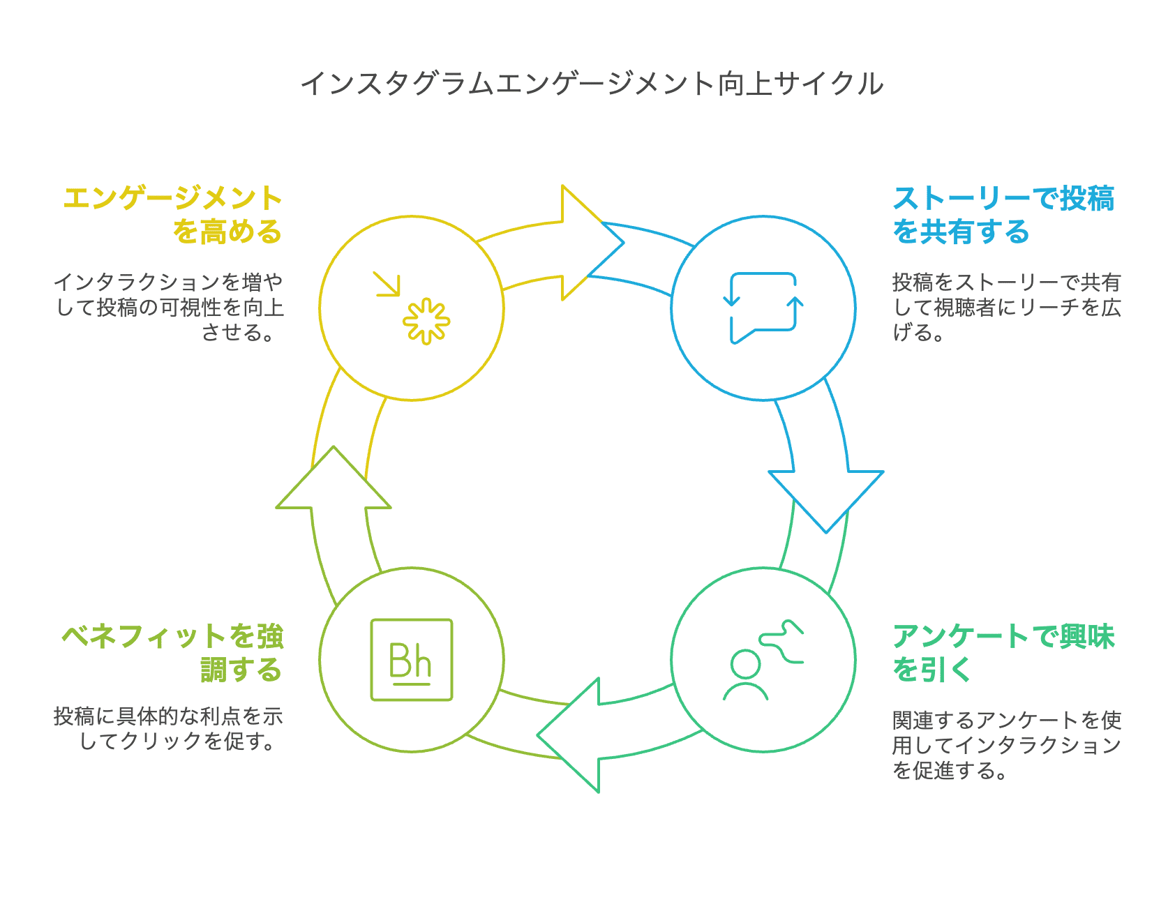 投稿のシェアする直前のストーリーズで関連性のある2択アンケートで興味付けを行ってください。