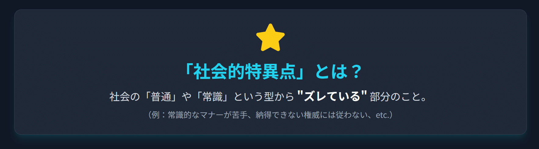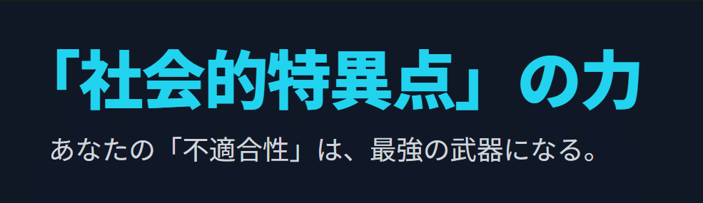 私がこの「普通じゃない」ことの価値を表現するために用いている言葉が、「社会的特異点」です。