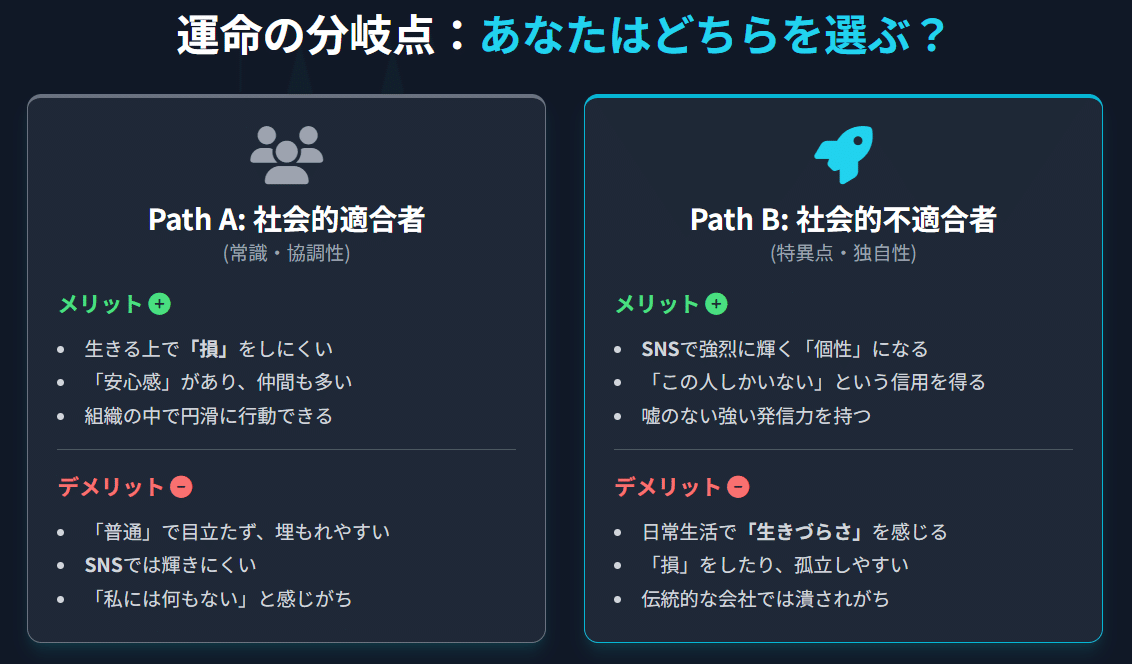 「型から外れる」生き方のメリット(SNSでの輝き)とデメリット(生きづらさ)