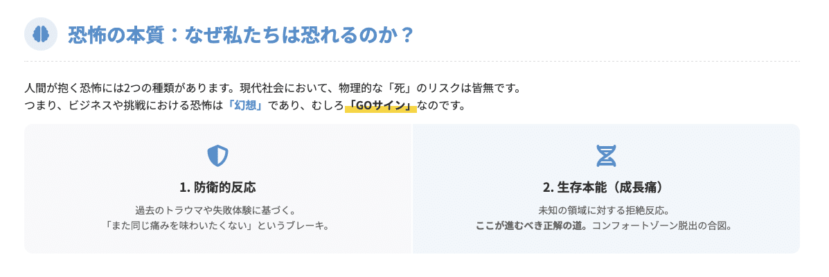あえて恐怖を感じる方向へ一歩を踏み出すこと、それ自体が現代における最強の生存戦略なのです。