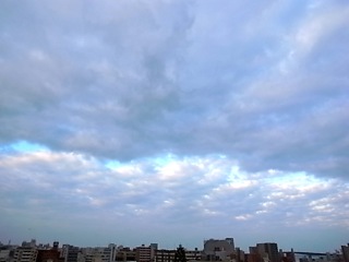 今朝の沖縄の空、やさしい色調の空。