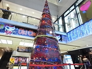 クリスマスのイルミネーションが鮮やかな、那覇OPA。