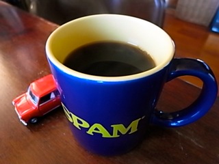 「SPAM」のマグカップ with Mini Cooperで。