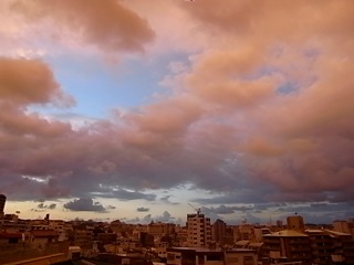 風で雲が流され、現在はトップの画像のように青空がのぞいています。