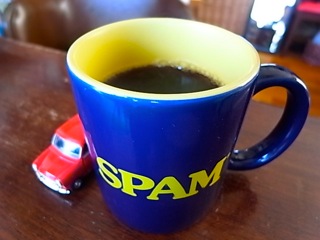 「SPAM」のマグカップ with Mini Cooperで。