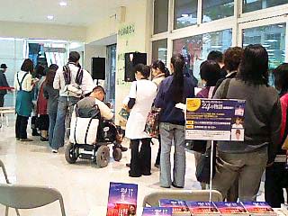 大勢の人々が、中山さんと砂川さんのサインと握手を求め、