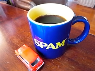 「SPAM」のマグカップ with Mini Cooperで。
