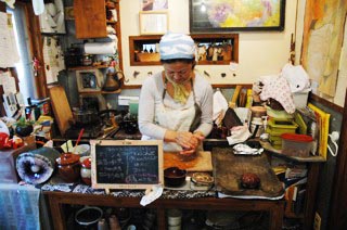 店内を暖める火鉢や、特注でオーダーした食器棚、