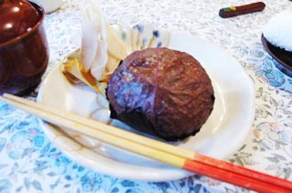 しそに包まれた玄米の中には、すっぱ~い梅干しが