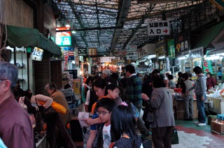 公設市場は不況を全く感じさせないほどの大にぎわい。
