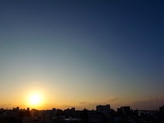 そして、オフィスから安謝港方面に沈み行く夕陽。