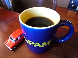 「SPAM」のマグカップ with Mini Cooperで。