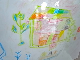 はじめて手にしたクレヨンで描いた絵画展「平和の絵手紙展」。