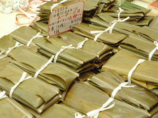 きょうはどこの家庭でも月桃の葉(サンニン)で巻いた