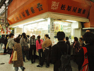 そこで老舗の「松原屋製菓所」の前に行列を発見。