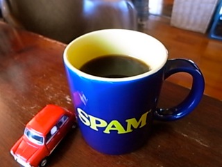 「SPAM」のマグカップ with Mini Cooperで。