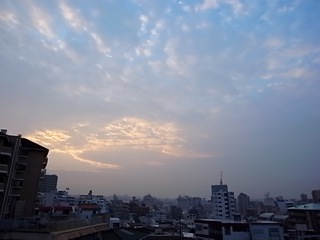 朝靄に包まれる那覇の街。夜明けを待ちます。