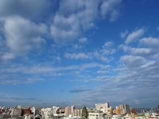 今朝の沖縄の空、晴れ間がのぞいたひととき。