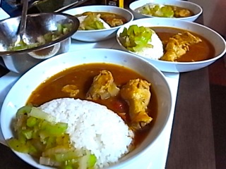 大人は、トロトロ軟骨ソーキと県債地鶏のトマトカレー。