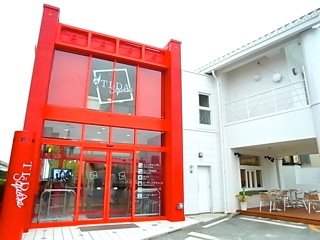 紅白の門構えが目出たい感じのファサード。