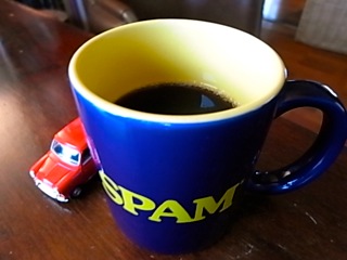 「SPAM」のマグカップ with Mini Cooperで。