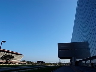 そこで見上げた、沖縄の抜けるような空とNHK。