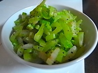 付け合わせは、セロリのオリーブオイル&岩塩ソテー。