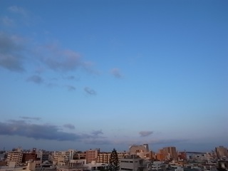 今朝の午前6時前。明け方は少し雲が広がってました。