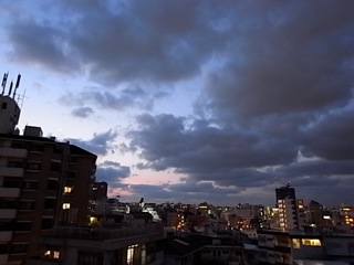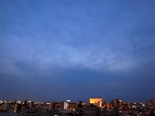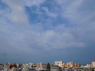 昨晩の沖縄の空と那覇の街。昨晩から薄い絹のような雲が広がりました。