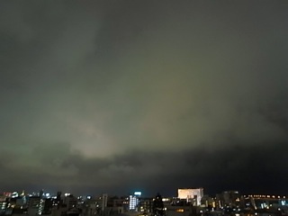 雲が夜の街の灯りを反射して幻想的な風景を生み出します。