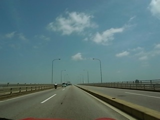 午前9時ごろ移動中に撮影した空@泊大橋。少し緑がかっています。