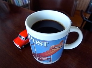 ノーマン・ロックウェルのマグカップ with Mini Cooperで、ストロング珈琲。