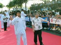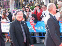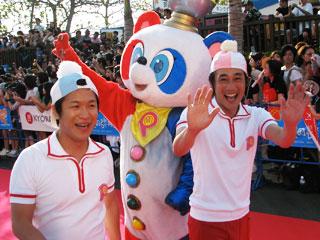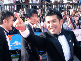 監督を務めた世界のナベアツはずっとファンの握手に応じていました。