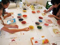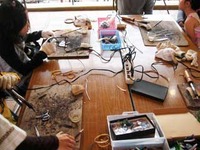 ガラス工房ではステンドグラス、織物教室ではコースターをつくっていました。