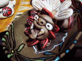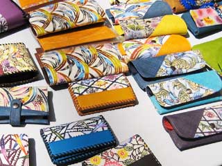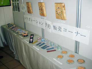 会場で気になったもの。その1、1階のフロアでカラフルな小物入れ(写真最上段)。