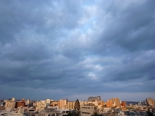 出勤直前に撮影した午前7時半の空。雲が風に流されクリアな青空です。